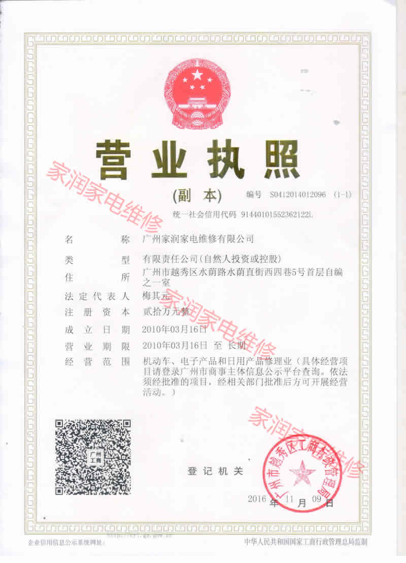 開戶銀行:工商銀行廣州東城支行賬戶名稱:廣州家潤家電維修有限公司對公賬號:3602031409200549026